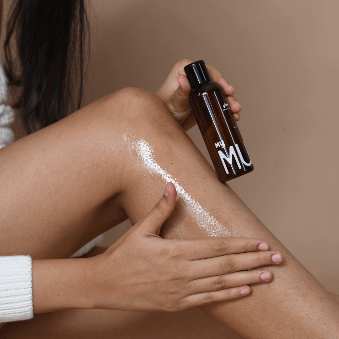 Ladies are holding MyMuse Glow Relaxing massage oil in their hands