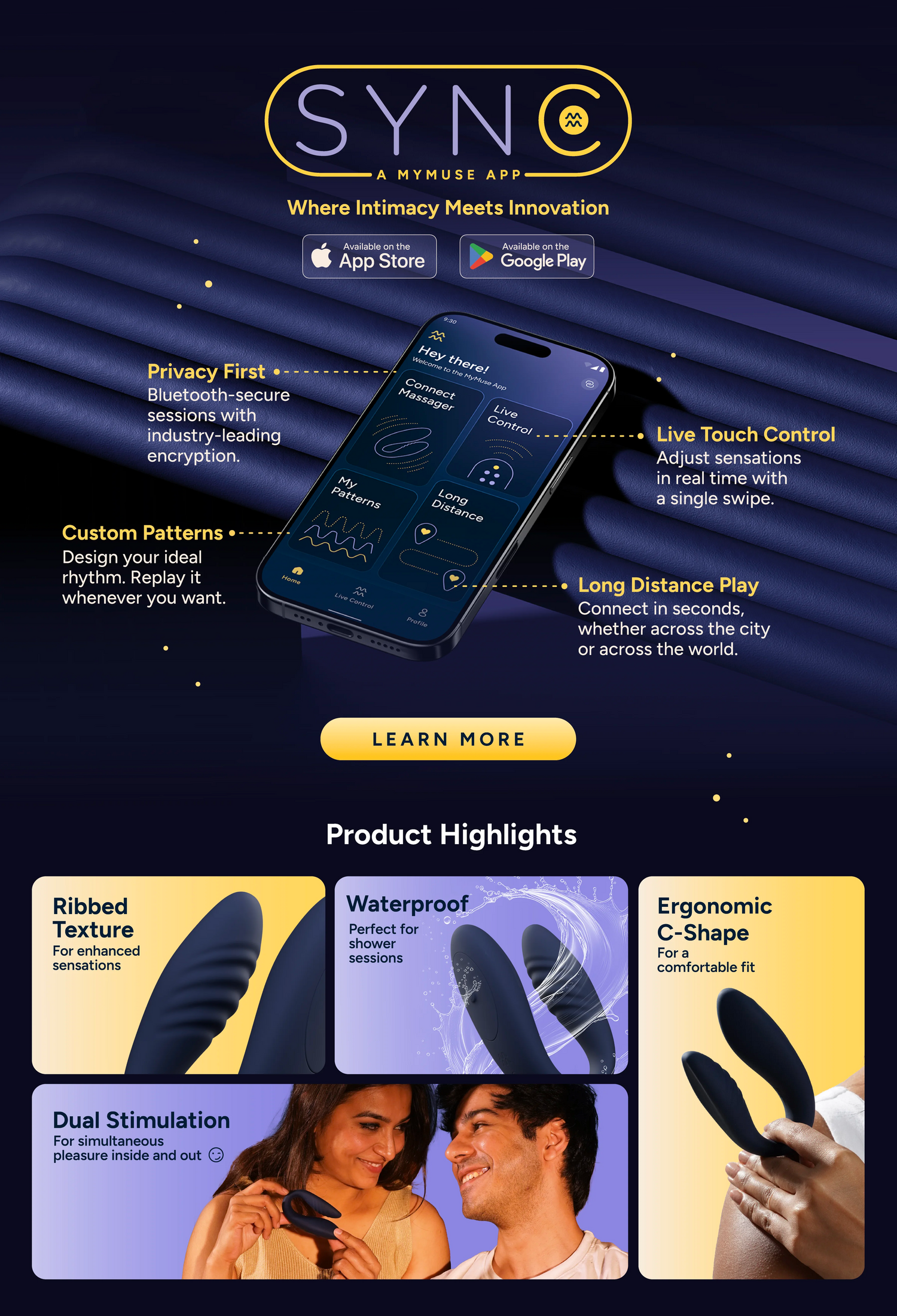 The MyMuse Sync app reimagines intimacy by giving you full control over your massager from your phone. Here's how it works: